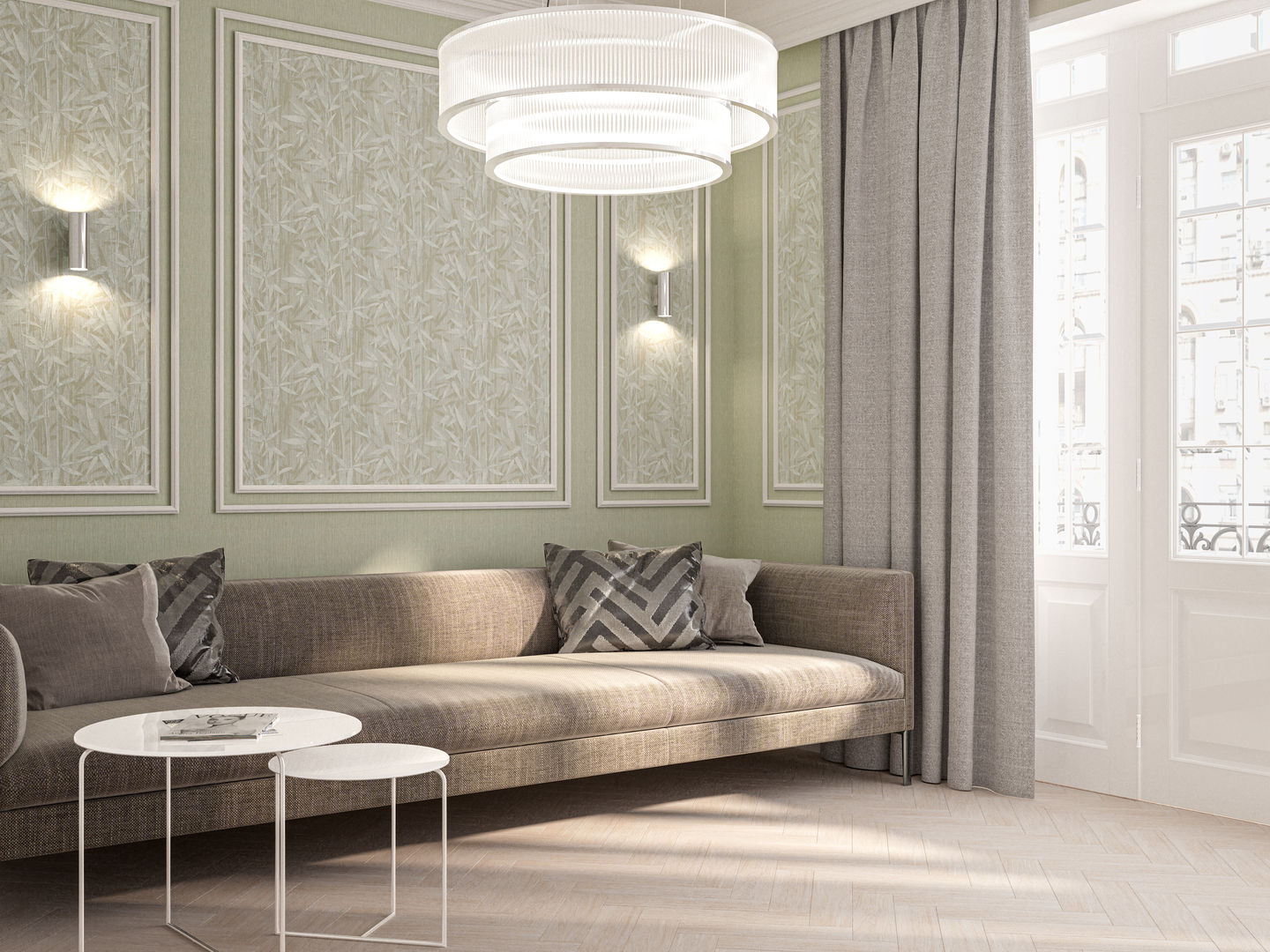 Обои виниловые Бамбук мотив, серый, зеленый