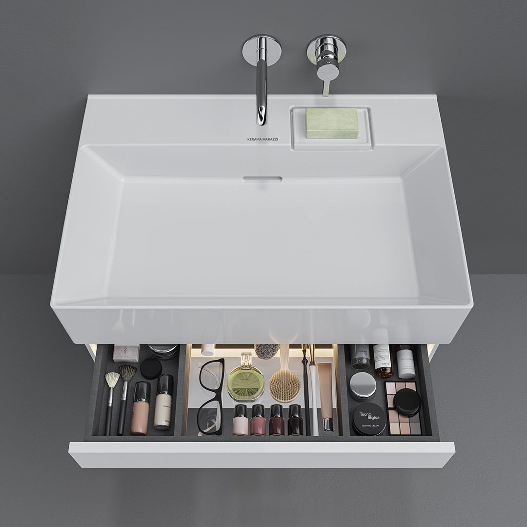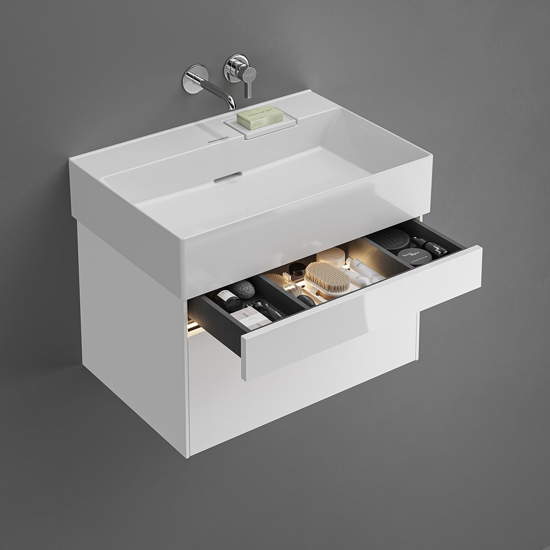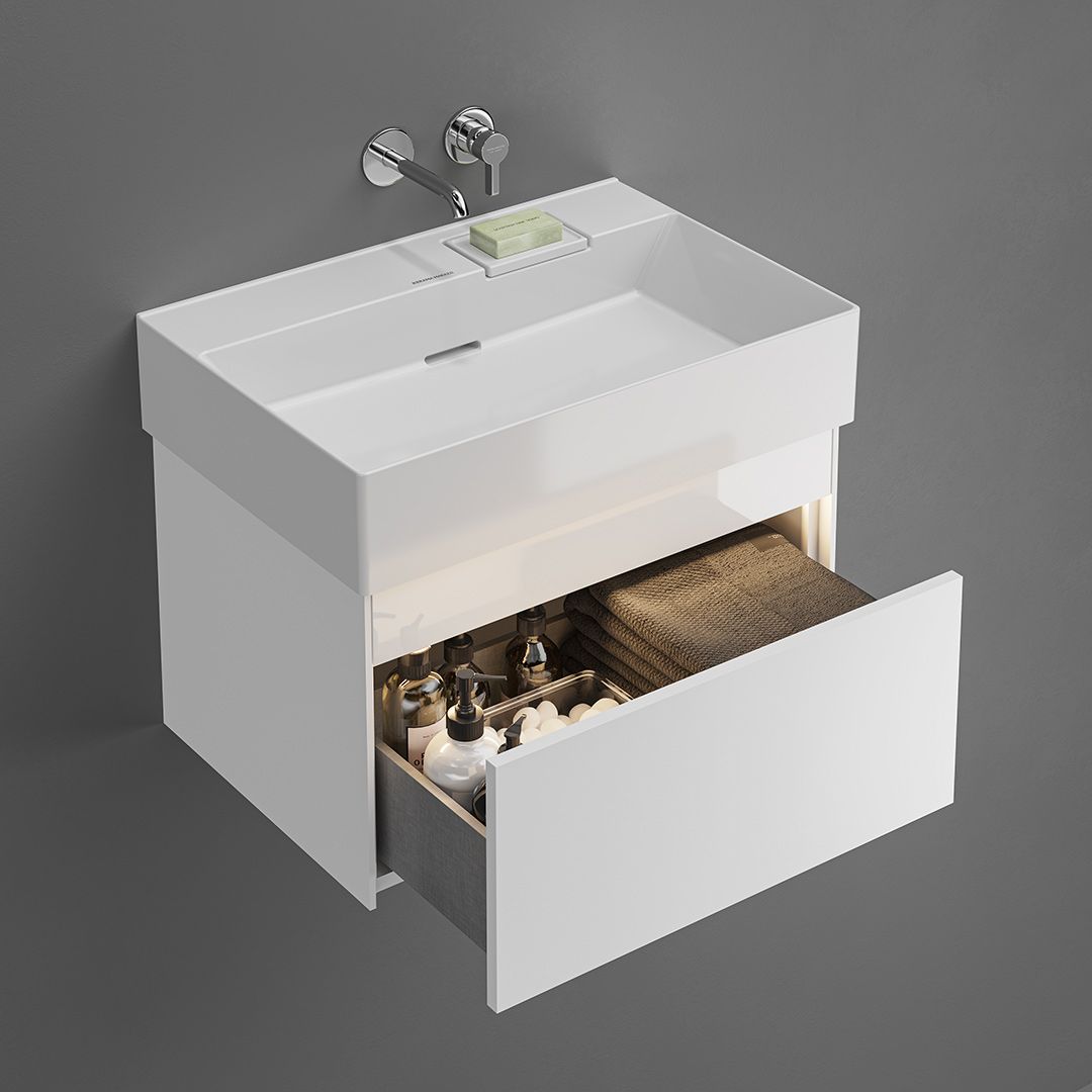 Раковины и подвесные тумбы «Лоджика» выражают дух коллекции «Текнолоджика», соединяя современный дизайн и вдохновляющие технологические возможности. Установка раковины возможна как на подвесную тумбу Лоджика соответствующего размера, так и в варианте без мебели, в том числе с полотенцедержателем Лоджика (кроме раковины шириной 60 см, которая используется только с тумбой).